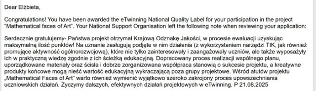 Niech to wyróżnienie będzie dla Was motywacją do dalszego rozwoju, a zdobyta wiedza i umiejętności – pomocą w spełnianiu marzeń i osiąganiu kolejnych celów.