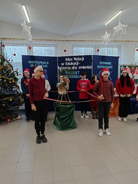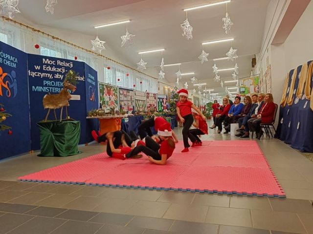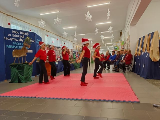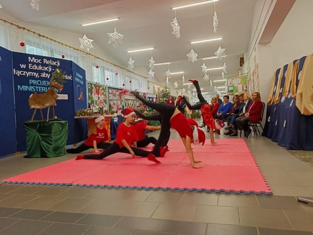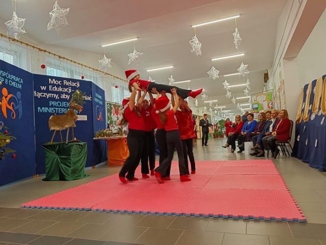 Uroczyste podsumowanie ministerialnego projektu uświetnił wyjątkowy pokaz gimnastyczny ,,Jedzie, jedzie renifer” przygotowany przez uczennice klasy trzeciej i szóstej. Dzisiejszy występ to przykład współpracy, wzajemnego wsparcia, a każda figura i układ gimnastyczny powstały dzięki współdziałaniu, uważności na drugiego człowieka i sile relacji.