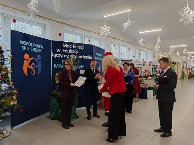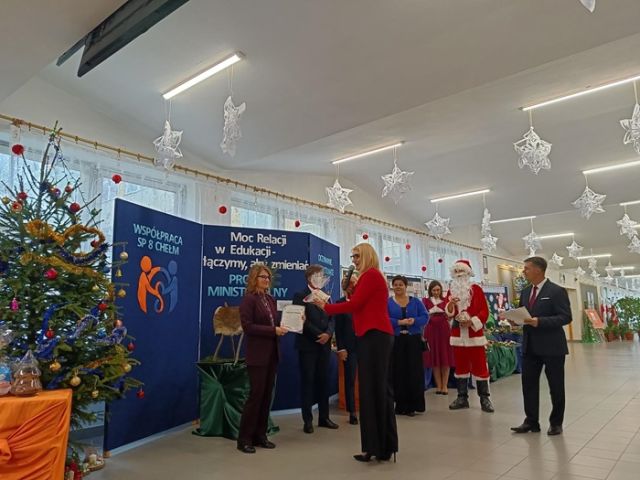 Szkoła Podstawowa nr 8 im. Bolesława Zygmunta Wirskiego w Chełmie miała zaszczyt znaleźć się w gronie 200 szkół w Polsce, które zostały zakwalifikowane do ogólnopolskiego programu pilotażowego „Moc Relacji w Edukacji – łączymy, aby zmieniać” realizowanego przez Ministerstwo Edukacji Narodowej i Instytut Badań Edukacyjnych. Pani Dyrektor - Beata Tomaszczuk – duma naszej szkoły – pełni funkcję ambasadora projektu. Nasza placówka realizowała przedsięwzięcie: Mikołaj 5.0:, w skład którego weszły dwa działania projektowe: Turkusowa pracownia samozarządzania i wspólnego celu oraz OK paczka od św. Mikołaja – jakie prezenty rozwoju dają nam nauczyciele?