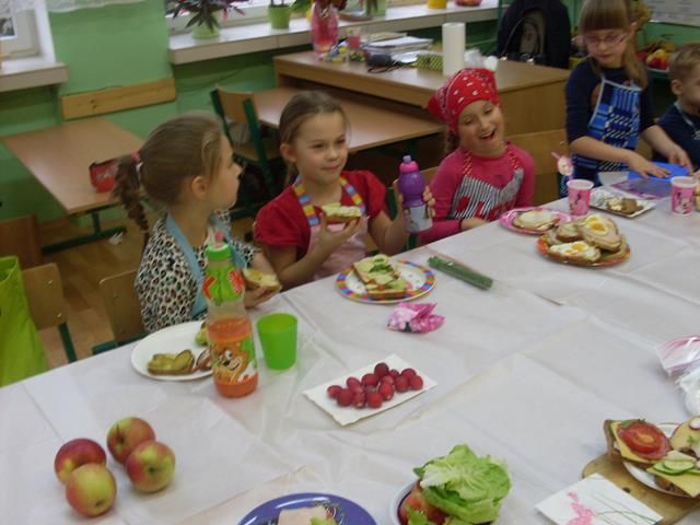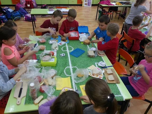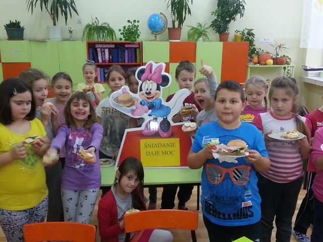 Akcja polega na zorganizowaniu wspólnych śniadań w klasach. To była świetna zabawa dla uczniów, dzięki której najmłodsi nauczyli się jak ważne jest codzienne, zdrowe śniadanie. Dzieci miały frajdę nie tylko ze wspólnego przygotowywania posiłku, ale także spróbowania nowych smaków, sprawdzenia, co lubią jeść na śniadanie koledzy i koleżanki oraz dowiedzenia się, dlaczego właściwie śniadanie jest takie ważne. Samochód bez benzyny nie zabierze nas na wycieczkę, a uczeń bez śniadania nie będzie miał siły do zabawy i nauki. Jednemu i drugiemu potrzebne jest „paliwo”. Ufamy, że ten przykład przemówił do wyobraźni dzieci. Dużo rozmawialiśmy o znaczeniu śniadania w codziennym żywieniu dzieci, a to dlatego, że statystyki wciąż pozostają niezadowalające… Jest jeszcze dużo do zrobienia w zakresie zdrowego żywienia najmłodszych i młodzieży.