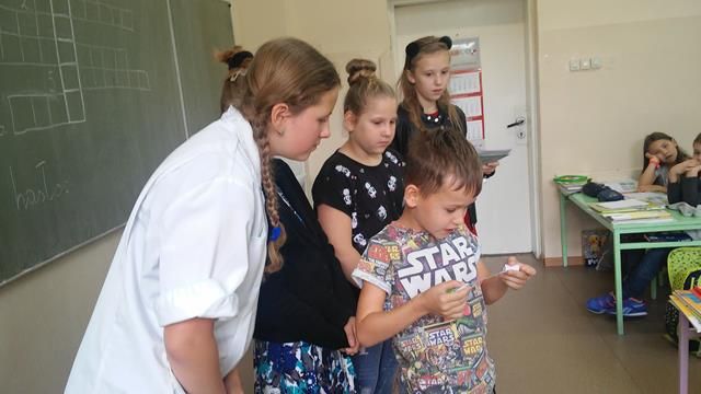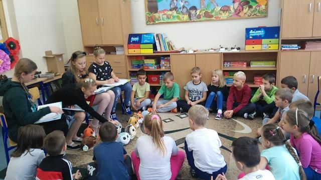 Z okazji Dnia Głośnego Czytania w październiku 2018 r. w naszej szkole przeprowadziliśmy akcję czytelniczą dla uczniów klas: I - III szkoły podstawowej. Przygody z książki „Co się stanie na leśnej polanie, czyli wesołe przygody Gangu Słodziaków” uczniom czytali: nauczyciel bibliotekarz, nauczyciel informatyki, pedagog oraz starsi uczniowie z Klubu Czytelnika. Odbyły się również zajęcia edukacyjne w kl. II c i I c. W klasie II c na spotkanie zaproszono panią pielęgniarkę, która opowiedziała dzieciom o swojej pracy. Dzieci wysłuchały rozdziału pt. „Zajęczyca Zuzia” czytanego przez członków Klubu Czytelnika. Uczniowie bardzo uważnie słuchali czytanego tekstu i odpowiedzieli na wszystkie pytania. Z tajemniczych kieszeni losowali przedmioty służące udzielaniu pierwszej pomocy, oglądali je, nazywali i poznali ich przeznaczenie. Następnie odgadywali wylosowane zagadki, a rozwiązania wpisywali w krzyżówkę. Maja, Jagoda, Oliwia, Maja, Julia i Zosia przygotowały dla swojej klasy niespodziankę. Zaprosiły swoje koleżanki i kolegów na piknik z Gangiem Słodziaków. Dziewczynki wystawiły teatrzyk, na którym Słodziaki przypomniały o jedzeniu zdrowej żywości, należytym zachowaniu się w lesie i kulturalnym zwracaniu się do innych. Ulubione pluszaki towarzyszyły dzieciom również podczas pisania dyktanda z trudnymi wyrazami z książki R. Piątkowskiej „Co się stanie na leśnej polanie, czyli wesołe przygody Gangu Słodziaków”.