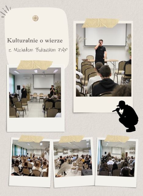 28 października br. w naszej szkole ósmoklasiści gościli Pana Michała Bukowskiego PAX, który mówił o swoim życiu, rapie i Panu Bogu. Było to jedno ze Spotkań młodych kulturalnie o wierze, które nasza placówka współorganizowała z Parafią Chrystusa Odkupiciela w Chełmie.