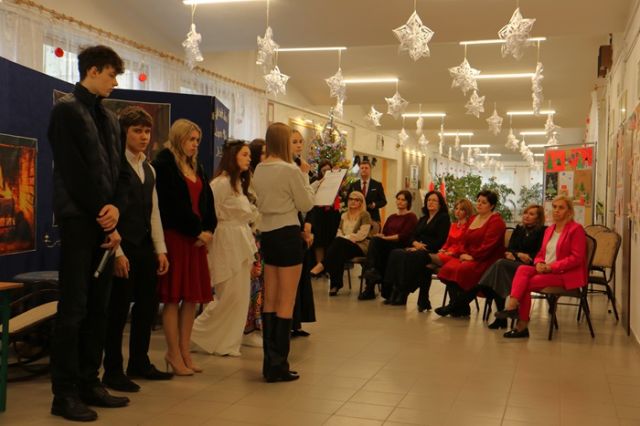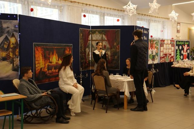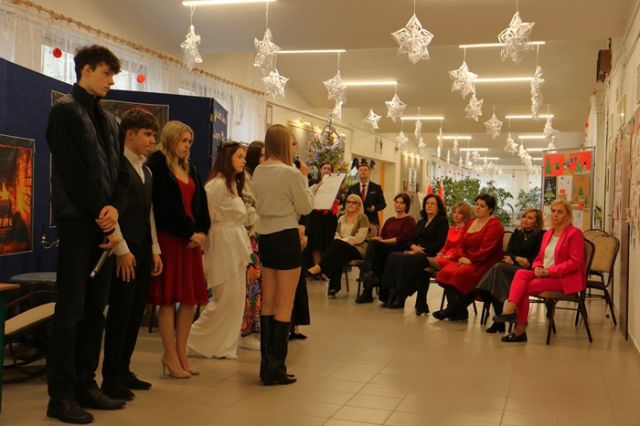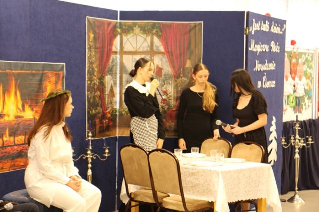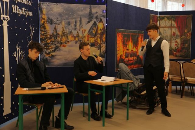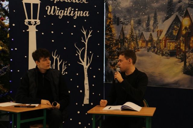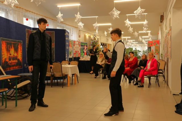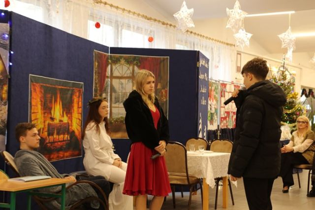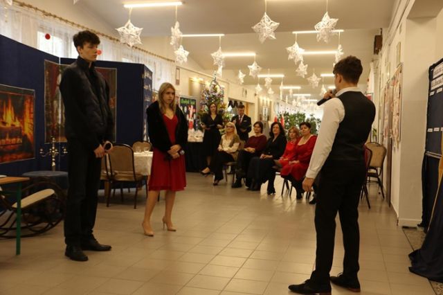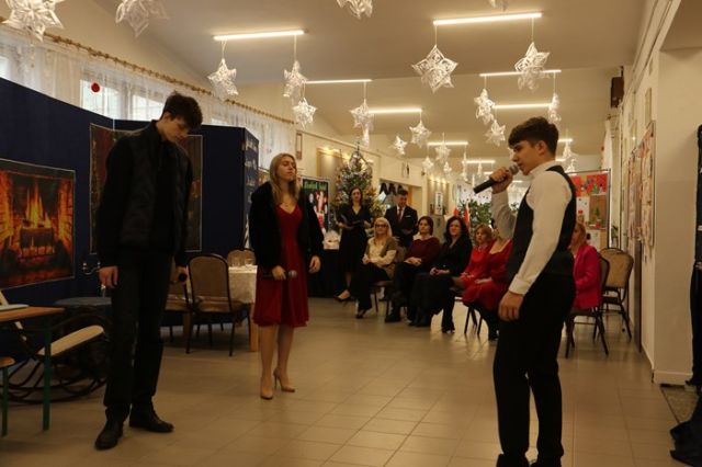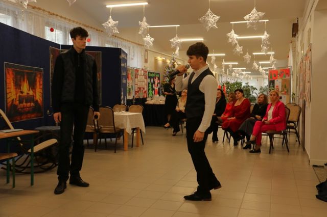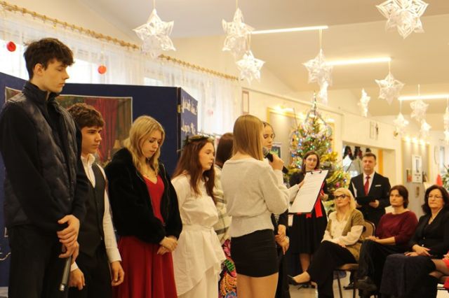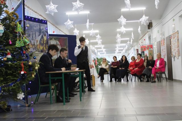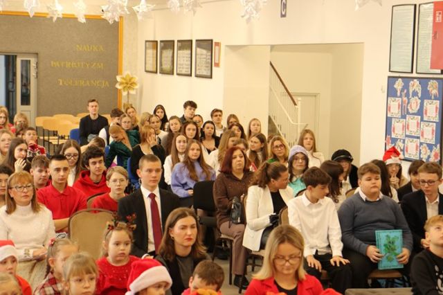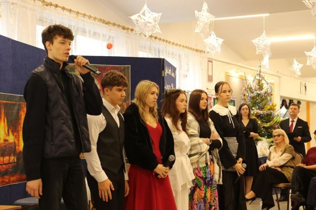 Pierwsza część wydarzenia miała charakter uroczystego spotkania wigilijnego, wypełnionego poezją, refleksją i muzyką. Uczniowie poprzez słowo i kolędę przypominali, że Boże Narodzenie to czas miłości, przebaczenia, uśmiechu i podania sobie ręki.