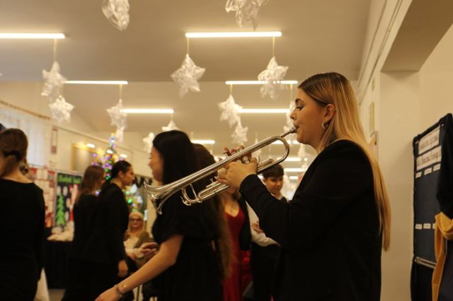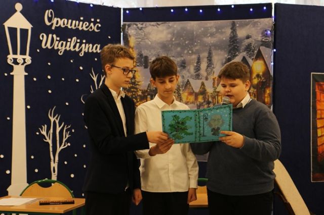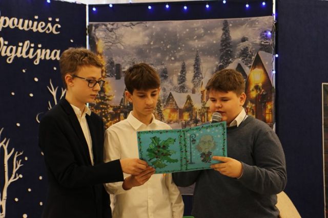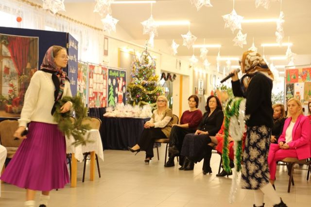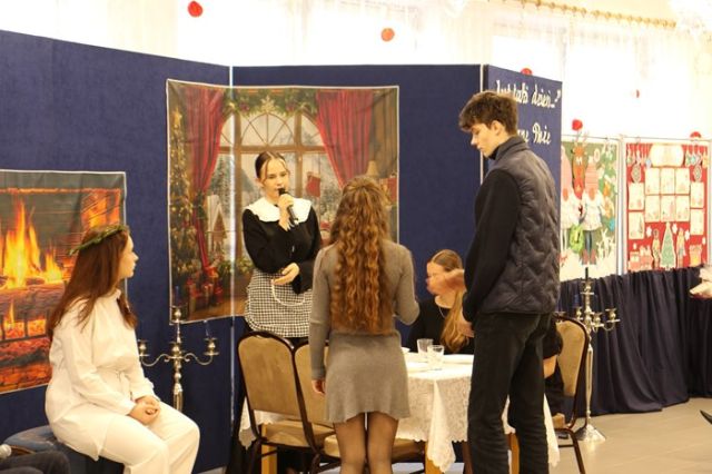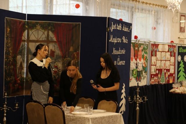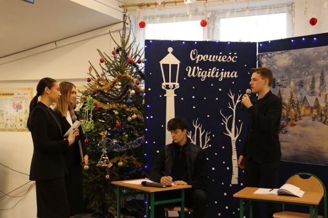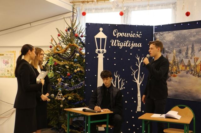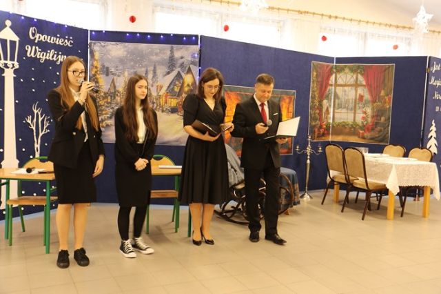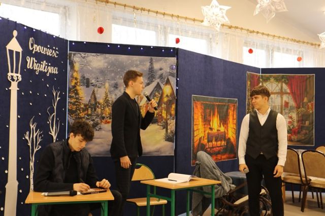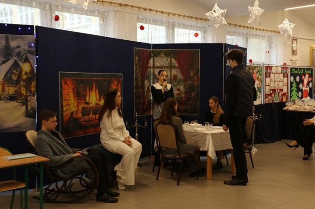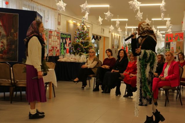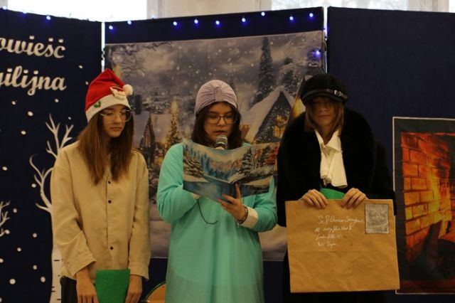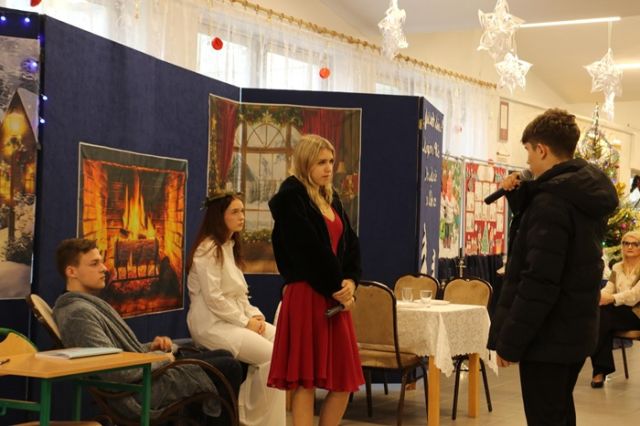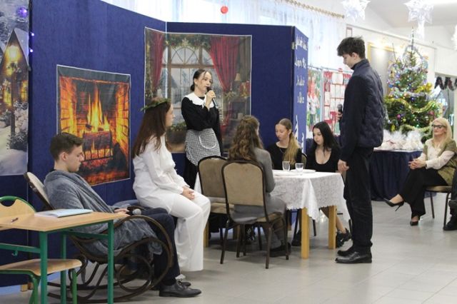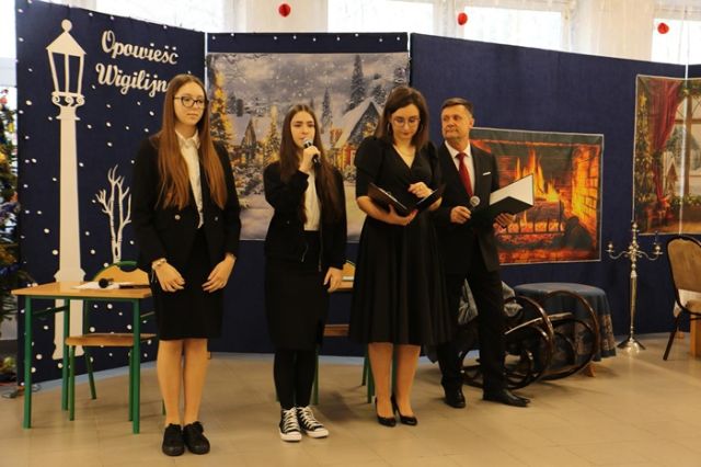 Pierwsza część wydarzenia miała charakter uroczystego spotkania wigilijnego, wypełnionego poezją, refleksją i muzyką. Uczniowie poprzez słowo i kolędę przypominali, że Boże Narodzenie to czas miłości, przebaczenia, uśmiechu i podania sobie ręki.