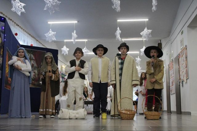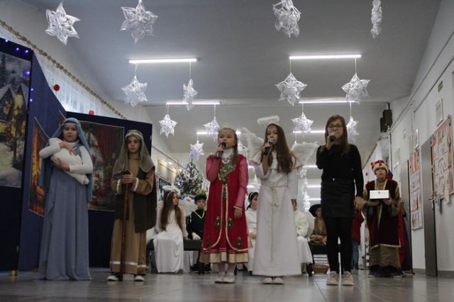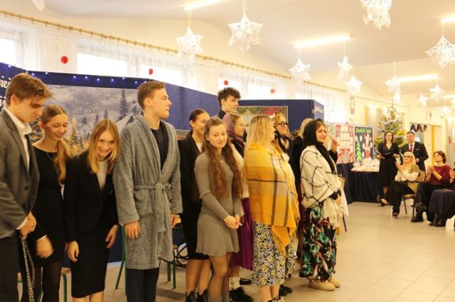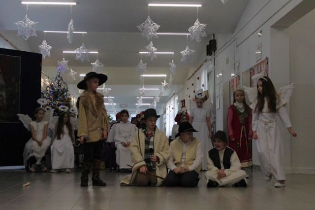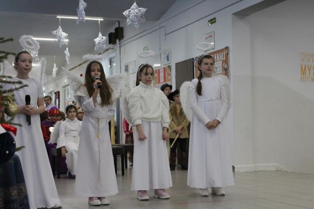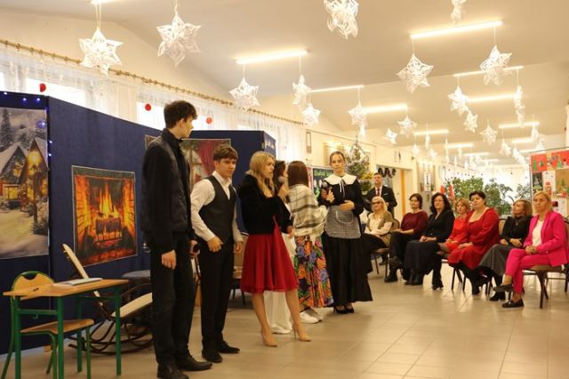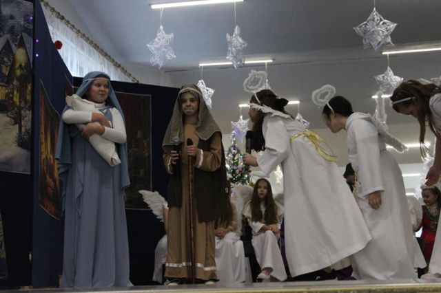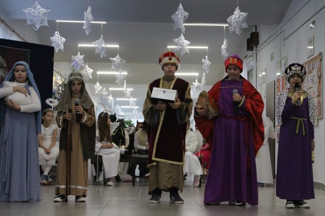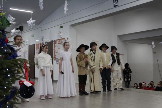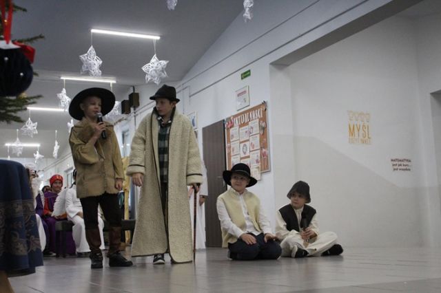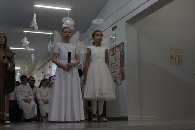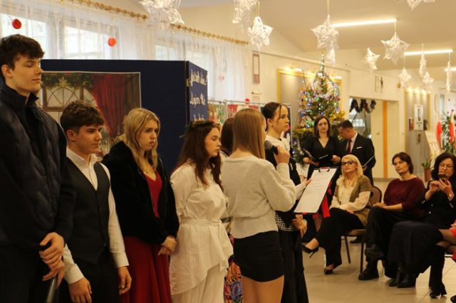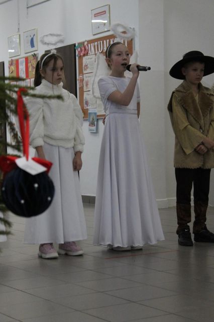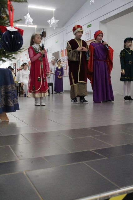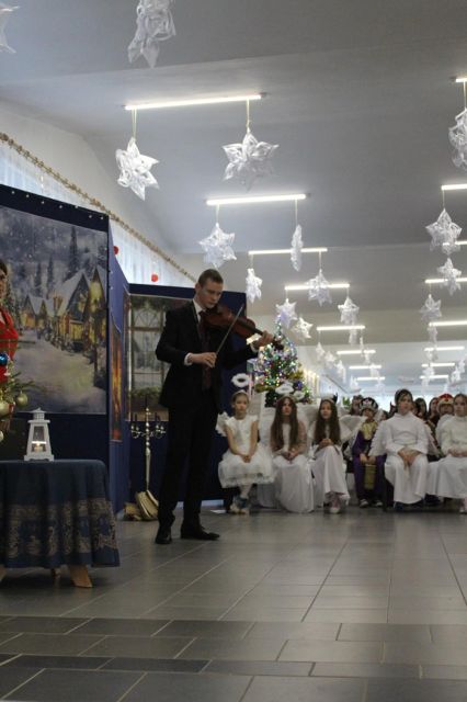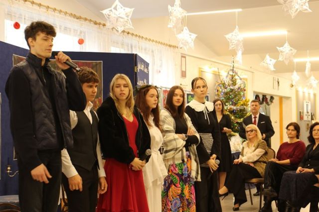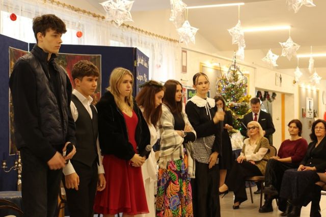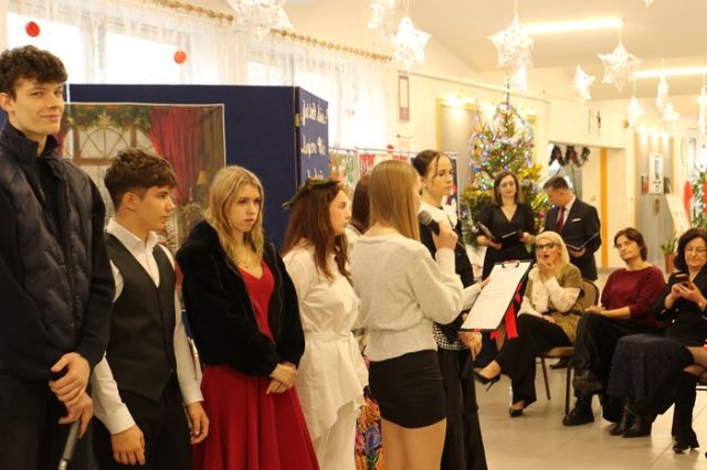 Nie zabrakło również jasełek przygotowanych przez uczniów klas trzecich pod opieką księdza Karola i Pani Magdaleny Gardzińskiej oraz wychowawców. Dziecięca szczerość, prostota przekazu i autentyczne emocje poruszyły serca wszystkich obecnych. Całość dopełnił koncert kolęd i pastorałek w wykonaniu uczniów „Ósemki”, w tym poruszające instrumentalne występy Jana Litwina.