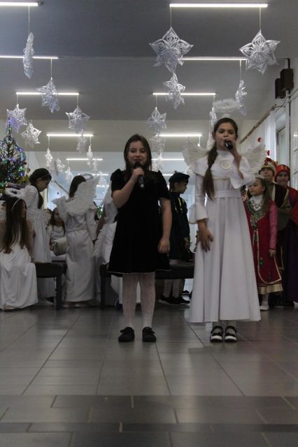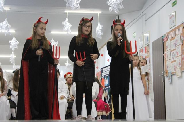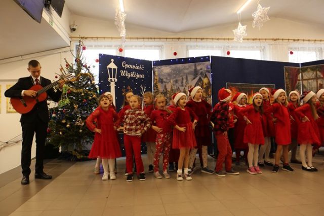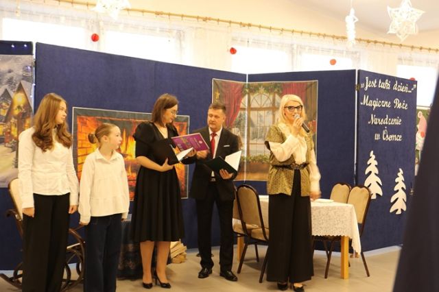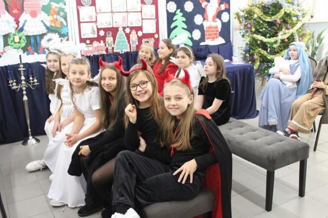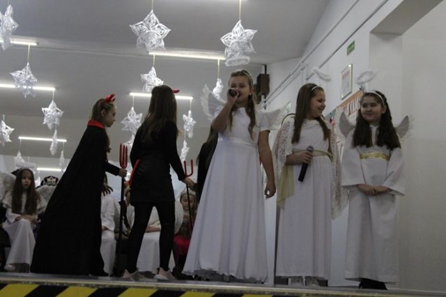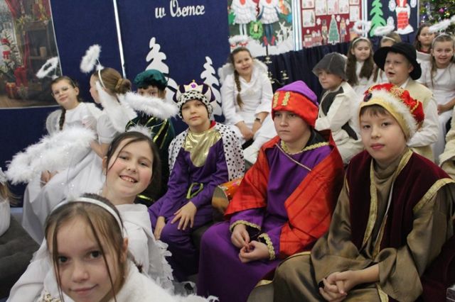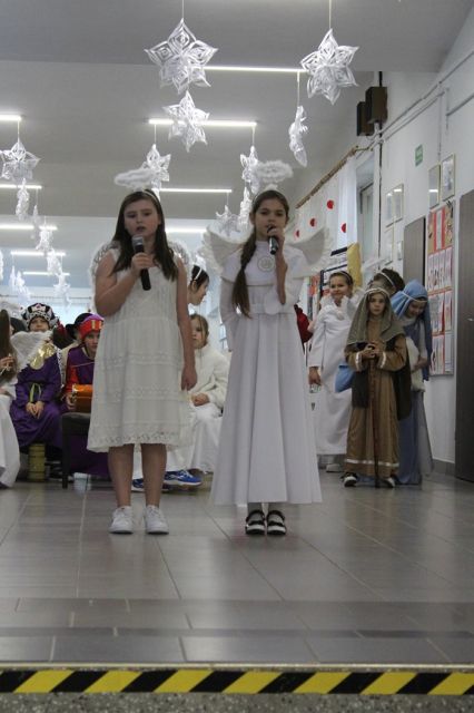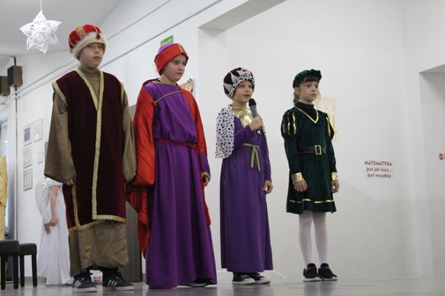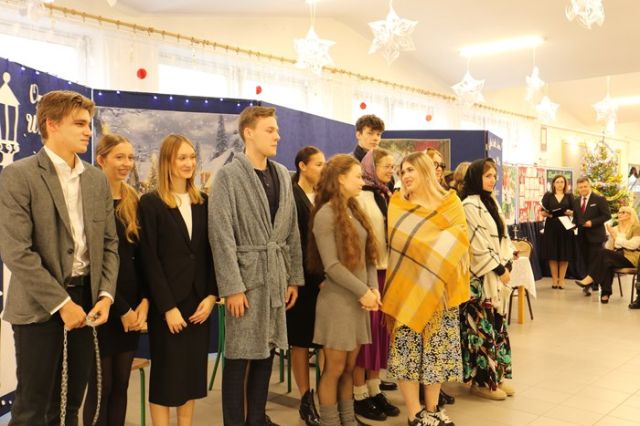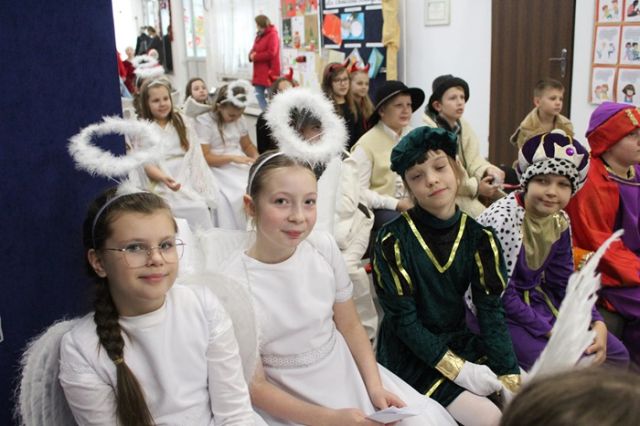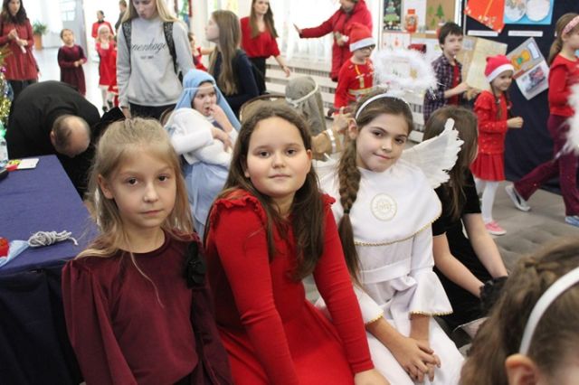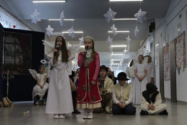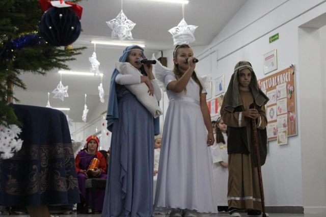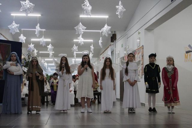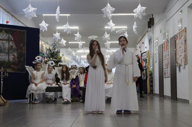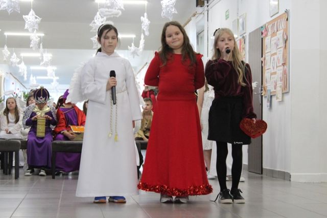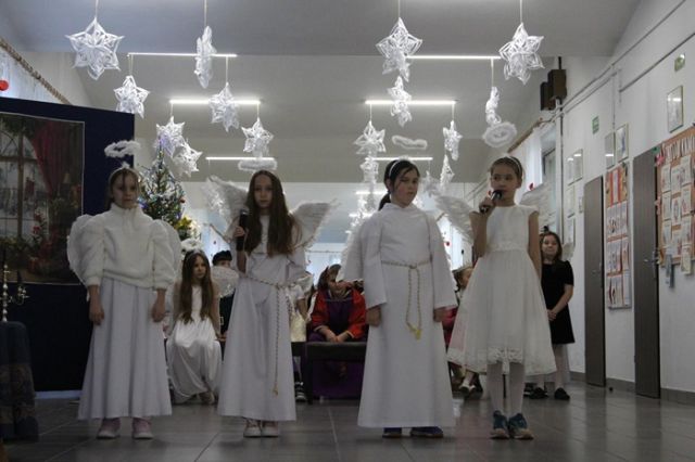 Nie zabrakło również jasełek przygotowanych przez uczniów klas trzecich pod opieką księdza Karola i Pani Magdaleny Gardzińskiej oraz wychowawców. Dziecięca szczerość, prostota przekazu i autentyczne emocje poruszyły serca wszystkich obecnych. Całość dopełnił koncert kolęd i pastorałek w wykonaniu uczniów „Ósemki”, w tym poruszające instrumentalne występy Jana Litwina.