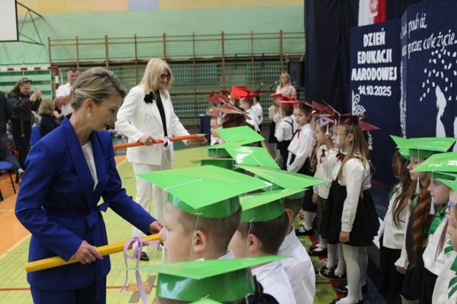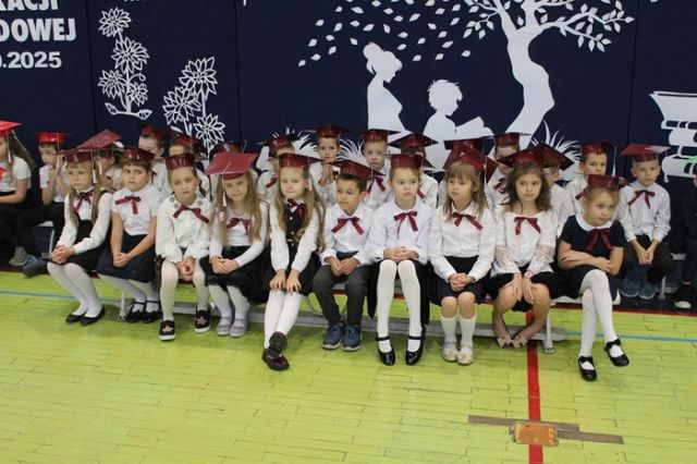 Najmłodszych kolegów powitały starsze uczennice z Samorządu Uczniowskiego. Uroczystość zakończyły życzenia, gratulacje i wspólne pamiątkowe zdjęcia.