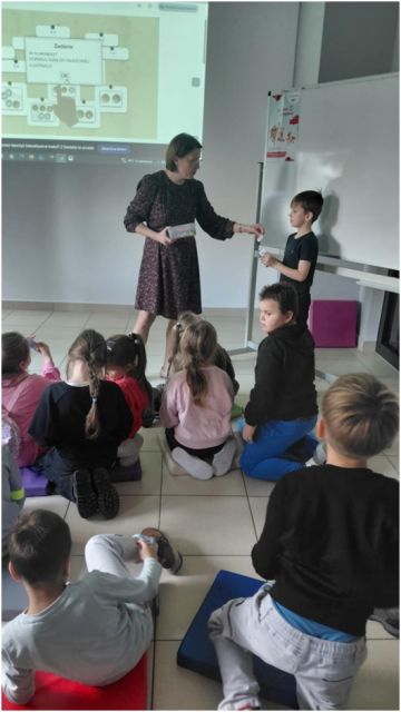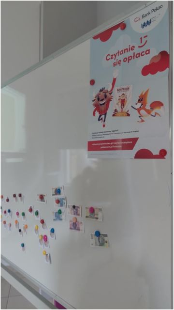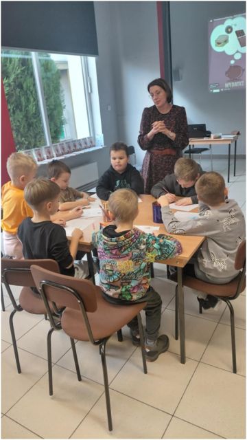 Podczas zajęć poznali monety i banknoty, a także wysłuchali fragmentu książki Justyny Bednarek pt. „Porwanie pani Złotówki” – pełnej humoru i ciekawych przygód.