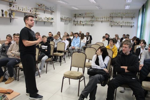 28 października br. w naszej szkole ósmoklasiści gościli Pana Michała Bukowskiego PAX, który mówił o swoim życiu, rapie i Panu Bogu. Było to jedno ze Spotkań młodych kulturalnie o wierze, które nasza placówka współorganizowała z Parafią Chrystusa Odkupiciela w Chełmie.