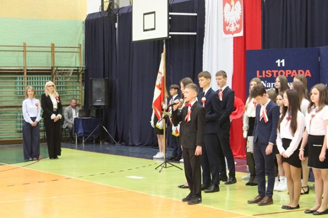 Następnie uczniowie zaprezentowali program artystyczny poświęcony drodze Polaków do wolności, przygotowany pod kierunkiem nauczycieli historii i muzyki. W montażu słowno-muzycznym przypomniano najważniejsze wydarzenia z historii naszej Ojczyzny, a całość dopełniły patriotyczne pieśni i wiersze.