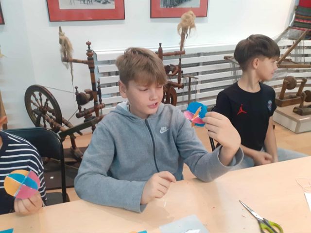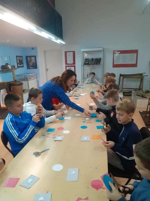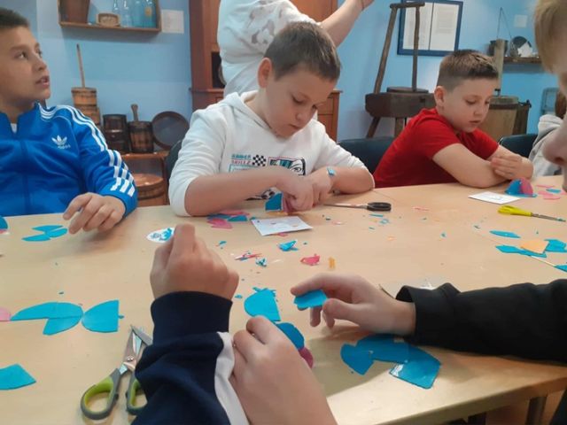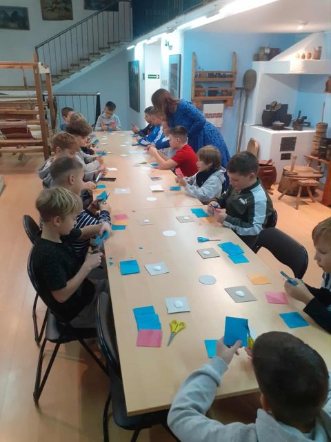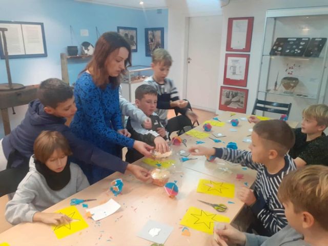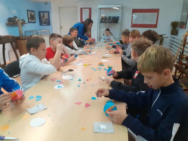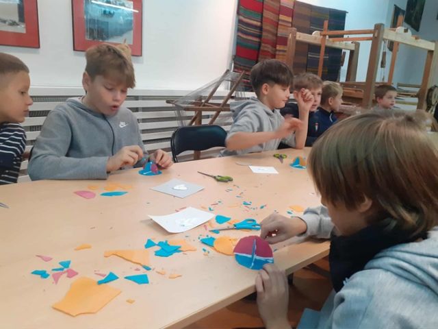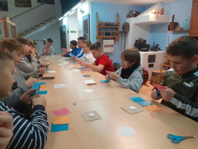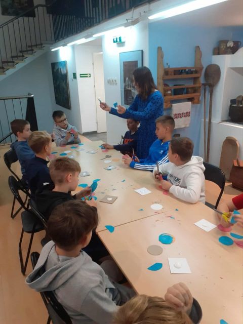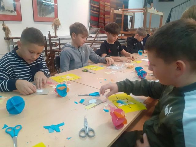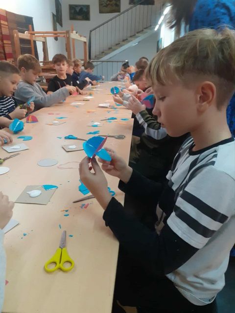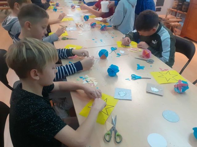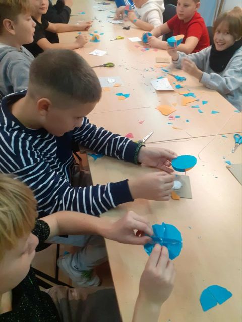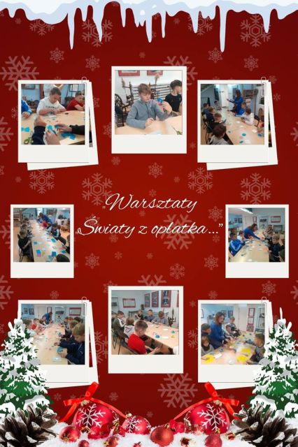 Dnia 26 XI 2025 r. kl. 4 b uczestniczyła w warsztatach wykonywania ozdób bożonarodzeniowych z opłatka. Podczas warsztatów uczniowie samodzielnie wykonywali ozdoby świąteczne. Technika, którą posługiwali się chłopcy wykonując bombkę z opłatka, wymagała dużo precyzji i skupienia od dzieci. Musieli oni wyciskać kształty i sklejać je w sposób, który prezentowała im pani prowadząca a materiał był kruchy i delikatny. Jednak jak widać na zdjęciach, uczniowie poradzili sobie z tym tematem świetnie, tworząc piękne ozdoby na choinkę. Dzięki warsztatom dzieci wyniosły nową wiedzę na temat tradycyjnych obrzędów i dekoracji bożonarodzeniowych. Zdobyły również nowe umiejętności manualne wycinając, konstruując i wyklejając ozdoby.