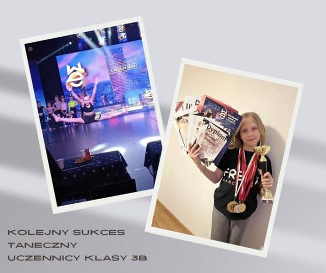 Blanka Cichosz, uczennica klasy 3b, podczas zawodów tanecznych w Warszawie „Warsaw Dance Champs 2026”, które odbywały się 16 - 18 stycznia 2026 r. zdobyła srebrny puchar, zajmując tym samym 2. miejsce na podium.