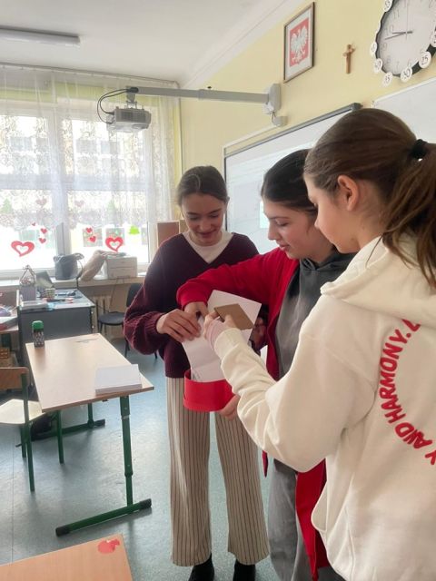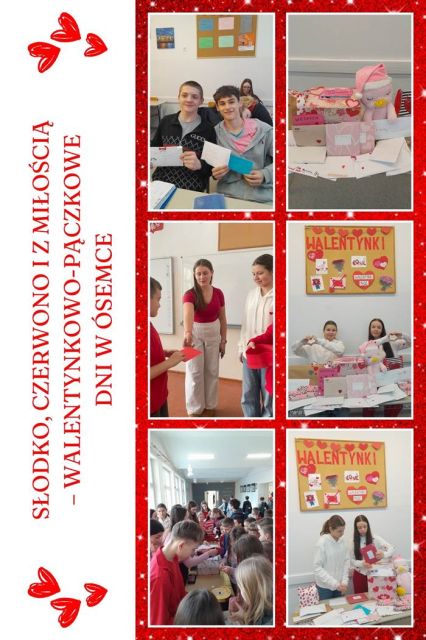 W piątek cała szkoła zamieniła się w walentynkową krainę. Uczniowie ubrani na czerwono i różowo oraz wyposażeni w walentynkowe gadżety mogli liczyć na miłą niespodziankę – byli zwolnieni z odpytywania i niezapowiedzianych kartkówek. Ogromnym powodzeniem cieszyła się również poczta walentynkowa, w której wzięło udział bardzo wielu uczniów. Ponad 200 pięknych walentynek trafiło do swoich adresatów!