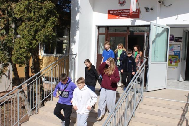 Ćwiczenia odbywały się pod nadzorem nauczycieli i wychowawców, zgodnie z przyjętymi procedurami bezpieczeństwa. Uczniowie mieli możliwość praktycznego przećwiczenia właściwych zachowań, w tym bezpiecznego opuszczania budynku szkoły z poszczególnych pawilonów oraz organizacji zbiórki w wyznaczonym miejscu.