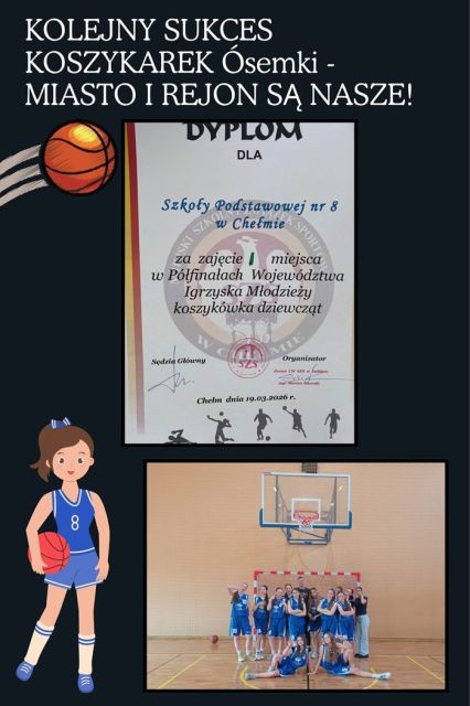 W dniu 19.03.2026 w Szkole Podstawowej nr 6 w Chełmie odbyły się zawody o Mistrzostwo Rejonowe w koszykówce dziewcząt. Nasze koszykarki po wcześniejszym Mistrzostwie Chełma, tym razem także pokonały wszystkie przeciwniczki i nie przegrywając meczu, zajęły I miejsce. Zaprezentowały wysokie umiejętności techniczne,przygotowanie taktyczne, pracę zespołową i niesamowitą wolę walki. Zwycięstwo to zapewniło naszej szkole awans do Mistrzostw Województwa i pozwoliło na reprezentowanie naszego miasta oraz powiatu w kolejnych szczeblach zawodów.