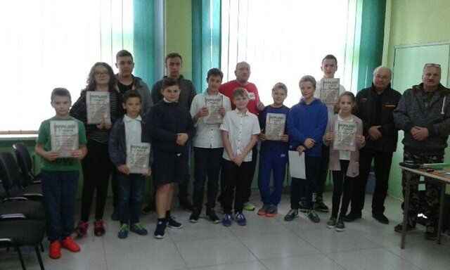 Pani Dyrektor Beata Kawalec podziękowała p. Prezesowi za nawiązanie współpracy ze szkołą i wraz z gośćmi wręczyła pamiątkowe dyplomy uczestnikom zawodów wędkarskich, które odbyły się kilka dni wcześniej na stawach w Mszanie.