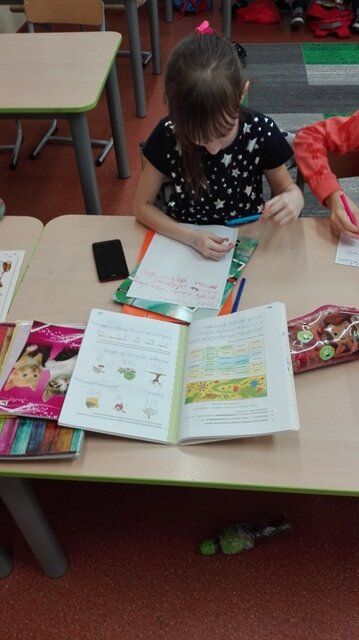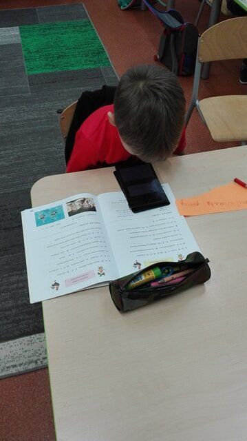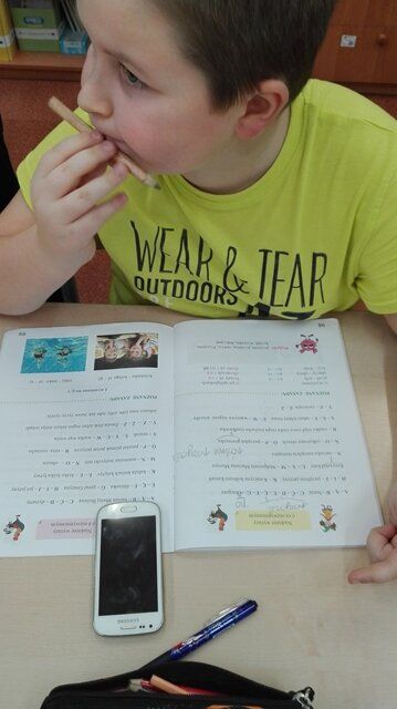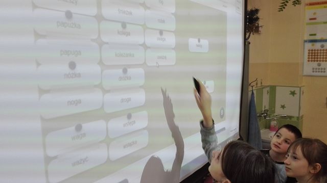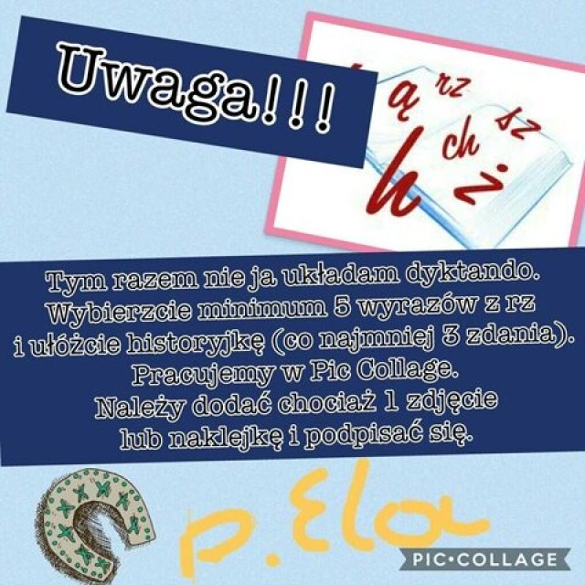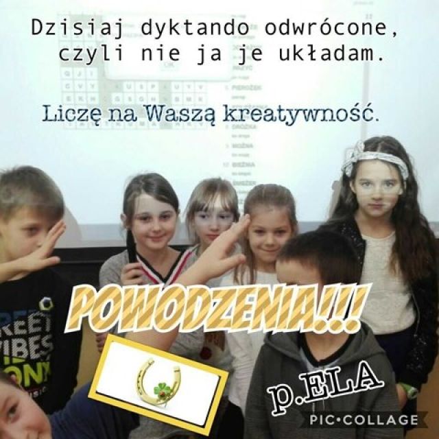 Oprócz wielu tradycyjnych ćwiczeń ortograficznych wykonali szereg różnorodnych ćwiczeń na tablicy interaktywnej, a 12 stycznia każdy uczeń pracując na urządzeniu mobilnym (indywidualnie lub w parze) utrwalił pisownię wyrazów z „rz” i „ż” wymiennym na g. /Załącznik nr 2 – Ćwiczenia interaktywne nr 2 – Ćwiczenia interaktywne/ Ale żeby było jeszcze ciekawiej uczniowie mieli za zadanie wybrać wyrazy z trudnością ortograficzną i ułożyć z nich historyjkę. „Odwrócone” dyktando należało zapisać w aplikacji Pic Collage i przesłać mailem do wychowawczyni p. Elżbiety Dras. /Załącznik nr 3 – Prace dzieci nr 3 – Prace dzieci/ Na zajęciach uczniowie poznali nowe możliwości aplikacji – przycinanie fotek, obrazków i ustawianie ich jako tła. Taka ortografia na wesoło rozbudziła wyobraźnię i sprawiła wiele radości. Ćwiczenia ortograficzne i dyktanda mogą być ciekawe, łatwe i przyjemne!
