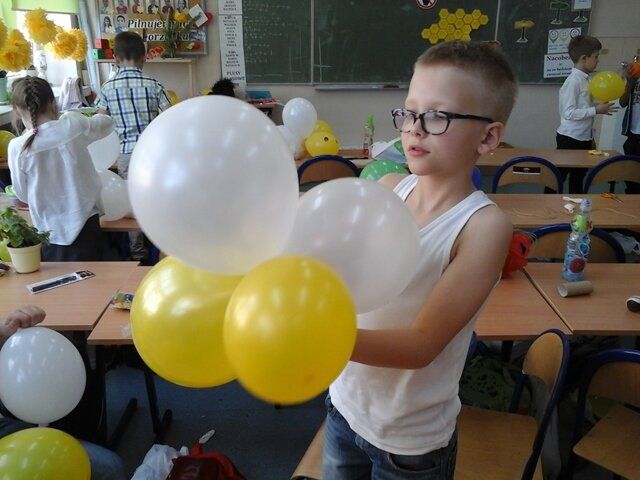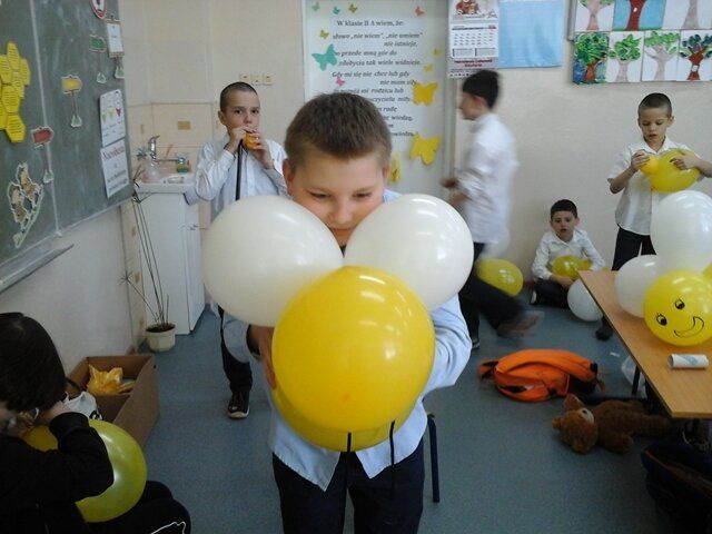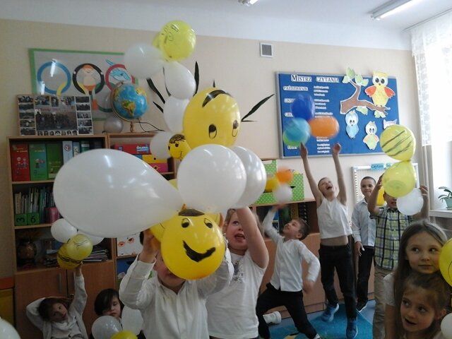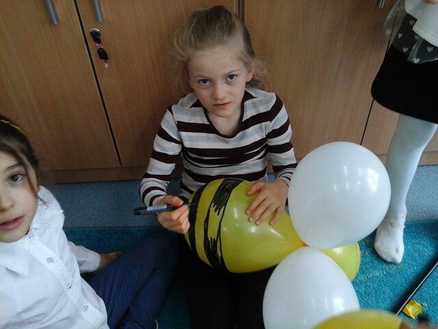 Wczoraj uczniowie klasy II a (wychowawca p. Berenika Błazucka) poznali życie i zwyczaje pszczół, a dziś sami przekonali się co to znaczy pracować jak w ulu. Wystarczyły cztery balony, dużo chęci i kreatywności, aby stworzyć prawdziwą, pszczelą rodzinę.
