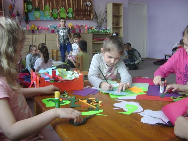 W minionym miesiącu pojawiły się pierwsze promienie słońca, które zachęciły naszych podopiecznych w świetlicy szkolnej do aktywnego uczestnictwa w zajęciach rozbudzających wrażliwość na piękno przyrody podczas budzenia się pory roku jaką jest wiosna. Pierwsze jej podmuchy sprawiły, że nasi uczniowie podczas zajęć chętnie wykonywali wielobarwne kolorowe kwiaty, ptaki, motyle, żabki, biedronki, piękne bociany. Wykorzystując różnorodne techniki i materiały plastyczne dzieci ciekawie przyozdobiły sale zajęć i korytarz. Różnorodność pomysłów sprawiła, że każdy chętny mógł wykonać interesującą go pracę, która na pewno przywoła na dobre Panią Wiosnę do nas. Choć w świetlicy już radośnie i tęczowo-kolorowo, my z utęsknieniem czekamy, kiedy słońce zagości już na stałe i posyłamy mu uśmiechy. A tymczasem zapraszamy do obejrzenia naszych prac słowami poety: