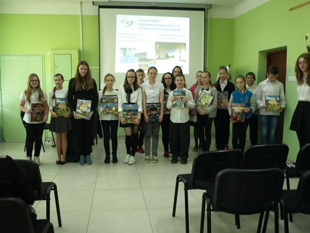 Organizatorzy konkursu: pani Ewa Skórzewska-Popek, pani Agata Wojtasiuk, pani Aneta Kowalewska, pani Marzena Chrabąszcz dziękują Radzie Rodziców ZSO nr 8 za ufundowanie nagród książkowych dla wszystkich uczestników oraz zakup owoców i soków.