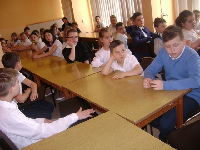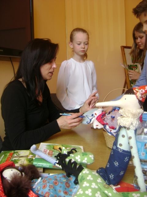 9 maja bieżącego roku uczniowie kl. IV b (wychowawca p. Ewa Skórzewska – Popek) uczestniczyli w literackim spotkaniu z p. Moniką Madejką – pisarką z Lublina. Autorka książek dla dzieci pozwoliła czwartoklasistom zajrzeć do zabawnego świata rezolutnego chłopca o imieniu Kajtek. Opowiadała o tym, jak się pisze opowieści dla dzieci.