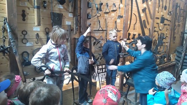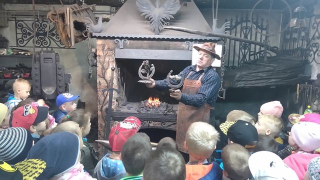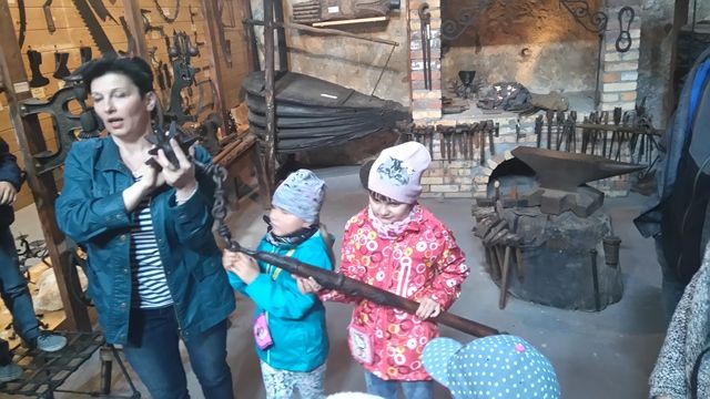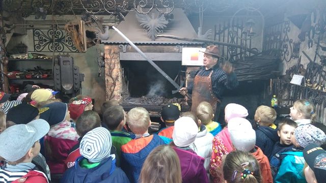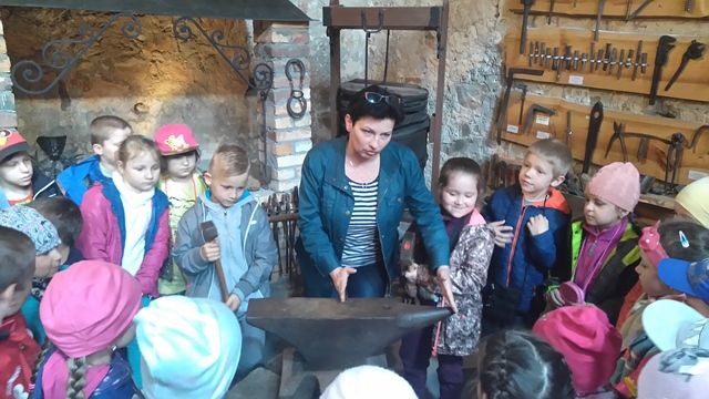 W Wojciechowie uczniowie poznali pracę kowala w kuźni. Zwiedzali Muzeum Kowalstwa w „Wieży Ariańskiej”- jest to jedyne w Polsce Muzeum Kowalstwa, które powstało w 1993 roku i pozwala cofnąć się w czasie do lat 20 - tych XX w. Wnętrze stylizowane na wzór chałupy Wojciechowskiej w pełni wyposażone w sprzęty i narzędzia którymi posługiwali się niegdyś nasi przodkowie. Zajmuje najwyższą kondygnację szesnastowiecznej Wieży Ariańskiej. W muzeum znajduje się ponad 900 eksponatów sztuki kowalskiej z kraju i zagranicy. Muzeum składa się z trzech części: Pierwsza to wystrój starej kuźni, z miechem kowalskim, paleniskiem, kowadłem i wieloma narzędziami wykorzystywanymi w zmaganiach z twardym i niewdzięcznym żelazem. W drugiej części zebrane są przedmioty, które kowal niegdyś wykonywał na potrzeby rolnictwa: motyki, topory, stary wóz, drewniane brony itp. Trzecia część to wystawa współczesnych wyrobów artystycznych wykonywanych tradycyjnymi technikami kowalskimi z zachowaniem cech regionu z jakiego dany kowal pochodzi. Zbiory muzeum uzupełniane są pracami powstałymi podczas Ogólnopolskich Spotkań Kowali i Ogólnopolskich Warsztatów Kowalskich organizowanych przez Gminny Ośrodek Kultury w Wojciechowie. W Muzeum eksponowana jest również historia folkloru Ziemi Wojciechowskiej. Przy Muzeum działa Galeria Sztuki Ludowej, w której można nabyć podkowę "na szczęście" i inne wyroby miejscowych twórców.