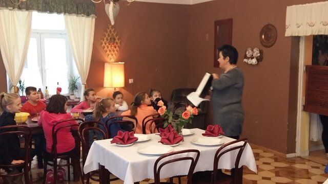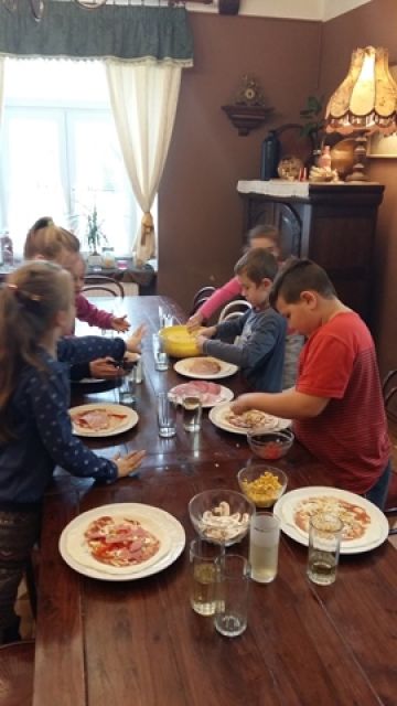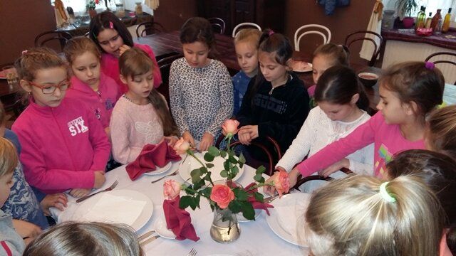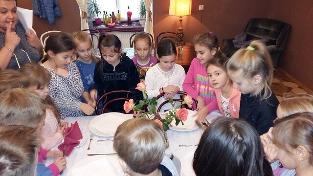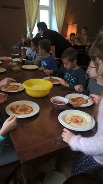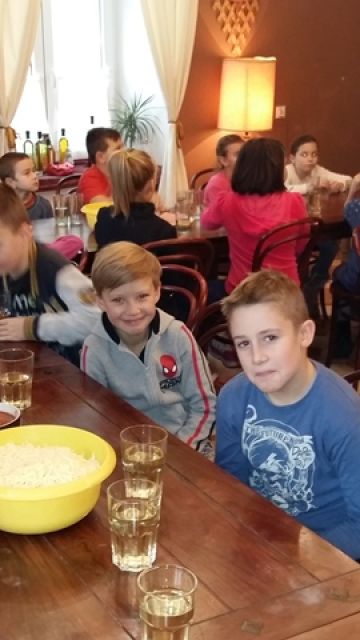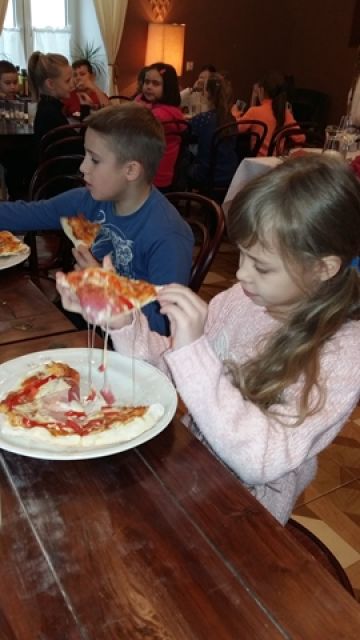 Dnia 16 i 17 listopada klasy IIId i IIIe wraz z wychowawcami, p. Ewą Drzewiecką i p. Moiniką Białasz-Chojna, udały się do gospody „Sto Pociech” na warsztaty kulinarne i lekcję etykiety zachowania się przy stole. Pani Edyta Wójtowicz – właścicielka restauracji i prowadząca zajęcia, pokazała prawidłowy sposób ułożenia sztućców, posługiwania się nimi i właściwego zachowania w czasie spożywania posiłków. Dziewczęta i chłopcy prezentowali na żywo wszystkie wyuczone czynności. Wreszcie przyszedł czas na stworzenie własnoręcznie przyrządzonej pizzy. Uczniowie wybierając ulubione dodatki tworzyły własne kompozycje smakowe. Pan kucharz włożył nasze „dzieła” do pieca i z niecierpliwością oczekiwaliśmy... W końcu przyszedł czas na wspólną konsumpcję. Pyszne kawałki szybko znikały z talerzy. Bardzo podobała nam się ta lekcja, ponieważ nauczyła nas wielu zasad savoir vivru.